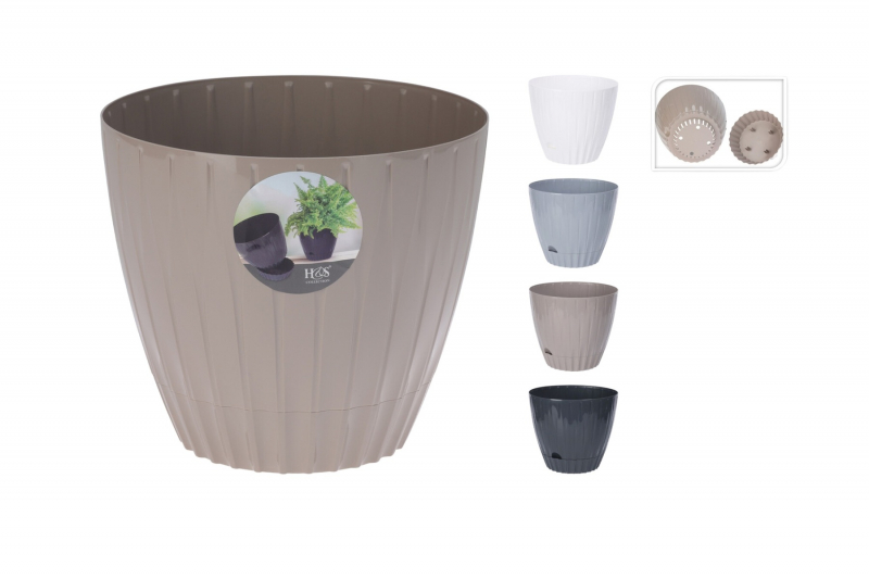 Moderný kvetináč s elegantným vrúbkovaným dizajnom je ideálnou voľbou pre interiér aj exteriér. Vďaka jednoduchým líniám a nadčasovým farbám sa ľahko kombinuje s rôznymi štýlmi bývania – od minimalistického až po škandinávsky.