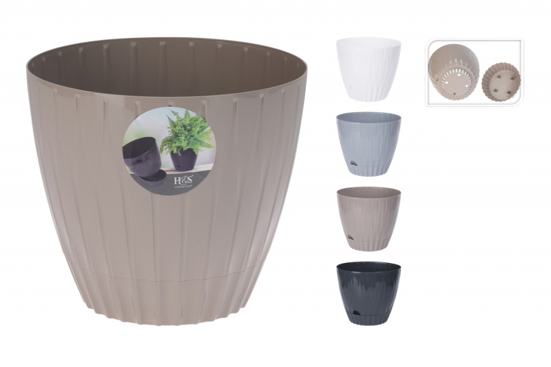Moderný kvetináč s elegantným vrúbkovaným dizajnom je ideálnou voľbou pre interiér aj exteriér. Vďaka jednoduchým líniám a nadčasovým farbám sa ľahko kombinuje s rôznymi štýlmi bývania – od minimalistického až po škandinávsky.