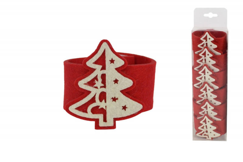 Elegantný vianočný držiak na servítku z filcu, ktorý dodá sviatočnému stolovaniu jedinečnú atmosféru. Vyrobený z mäkkého, kvalitného filcu, príjemného na dotyk a dostatočne pevného, aby krásne držal tvar.