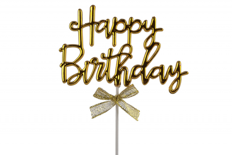 Tortový zápich s nápisom "Happy Birthday" je obľúbenou dekoráciou na narodeninové torty.
