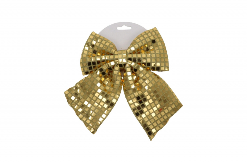Vneste do svojej výzdoby poriadnu dávku žiarivého „DISCO“ efektu! Táto elegantná zlatá dekoračná mašľa s lesklým mozaikovým vzorom okamžite upúta pozornosť a dodá priestoru luxusný, slávnostný vzhľad.