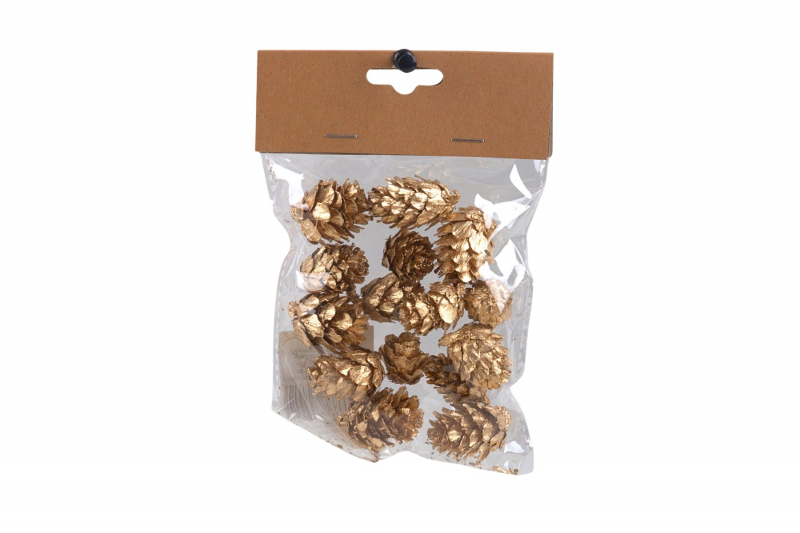 Sušené šišky so zlatým náterom sú krásnym dekoračným prvkom, ktorý vnesie do interiéru sviatočný a elegantný nádych.