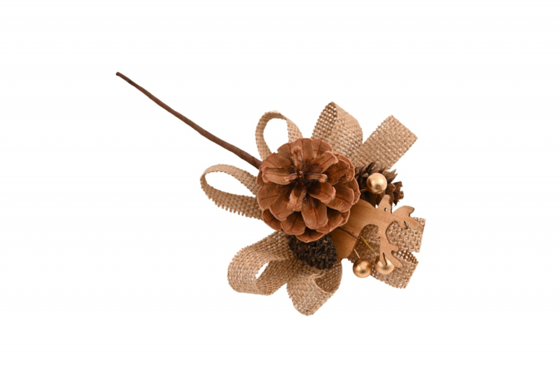Vianočný zápich v prírodnom rustikálnom štýle vytvára hrejivý pocit a je vhodný ako dekorácia do aranžmánov, vencov či zdobenie darčekov.