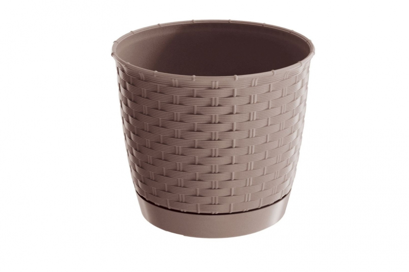 Plastový kvetináč s podložkou v kávovej farbe.
