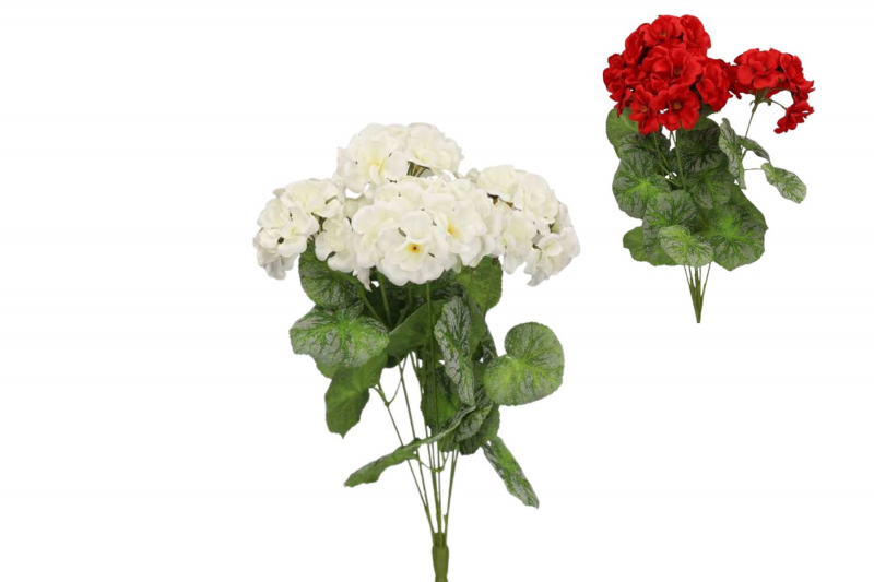 Dekoratívna umelá kytica pelargónie, známej aj ako muškát, je ideálnou voľbou pre tých, ktorí chcú mať krásne kvety bez starostlivosti. Bohaté kvety v kombinácii s realisticky spracovanými zelenými listami pôsobia prirodzene a sviežo počas celého roka.