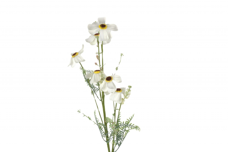 Dekoratívny umelý konár kosmosu (krasuľky) v bielej farbe je krásnym doplnkom do každého interiéru. Jemné kvety s typickým žltým stredom spolu s detailne spracovanými listami vytvárajú prirodzený a elegantný vzhľad, ktorý pripomína rozkvitnutú letnú záhradu.