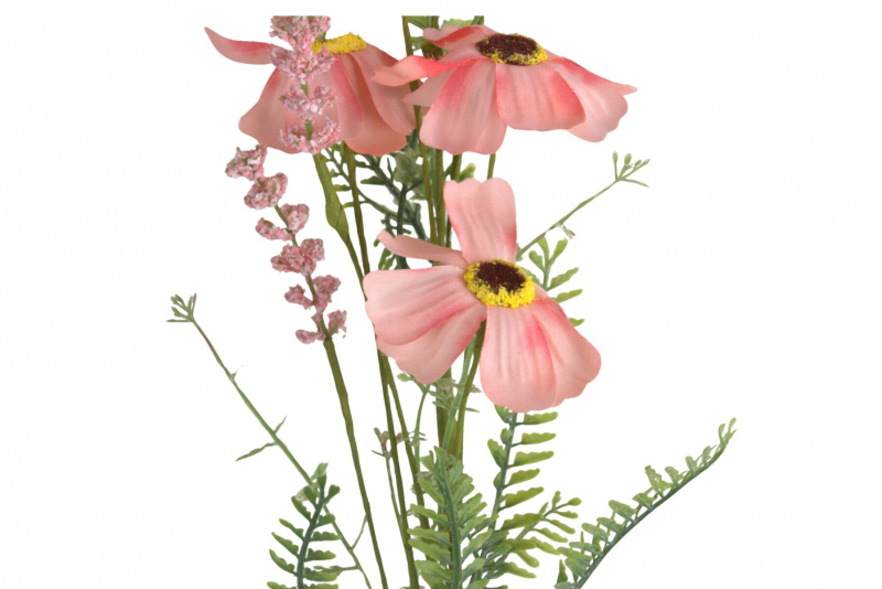 Dekoratívny umelý konár kosmosu (krasuľky) v jemnej ružovej farbe je krásnym doplnkom do každého interiéru. Jemné kvety s typickým žltým stredom spolu s detailne spracovanými listami vytvárajú prirodzený a elegantný vzhľad, ktorý pripomína rozkvitnutú letnú záhradu.