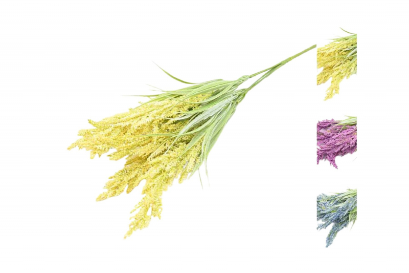 Dekoratívna umelá kytica v štýle poľnej trávy s výškou 40 cm je ideálnym doplnkom do interiéru aj exteriéru. Farebné prevedenie pôsobí prirodzene a sviežo, vďaka čomu oživí každý priestor – obývačku, chodbu, kanceláriu, balkón či terasu.
