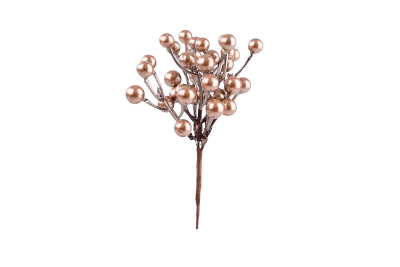Elegantný umelý konár zdobený lesklými bobuľami v odtieni mocha mousse. Bobule sú usporiadané v hustých trsoch na tenkých vetvičkách, čo vytvára moderný a luxusne pôsobiaci vzhľad.