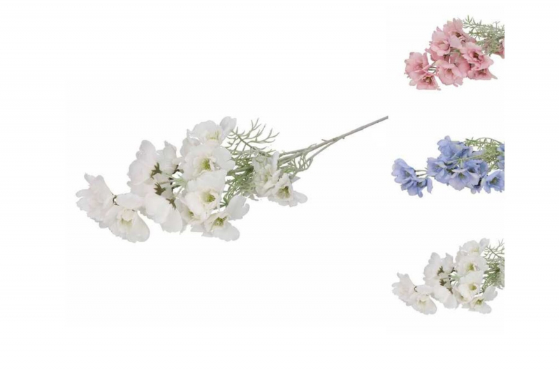 Dekoratívny kvet COSMOS s flockovanou úpravou pôsobí jemne a prirodzene na dotyk. Zamatový (semišový) efekt na povrchu kvetov dodáva aranžmánu luxusný vzhľad a realistický detail.