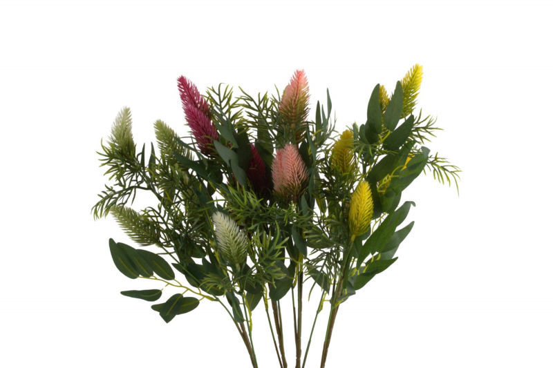 Umelý konár bodliaka je štýlový dekoračný prvok, ktorý oživí každý interiér prirodzeným vzhľadom. Vyniká detailne spracovanými kvetmi v rôznych farebných odtieňoch – od jemnej krémovej, cez ružovú až po výraznú žltú – doplnenými o husté zelené lístie a jemné vetvičky.