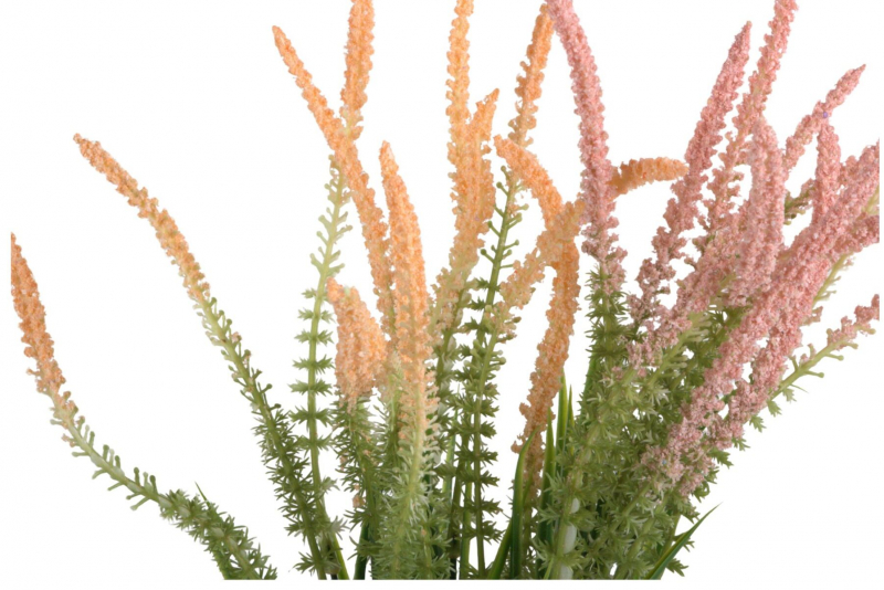 Umelá Veronika virgínska je elegantná dekoratívna rastlina inšpirovaná prirodzenou krásou lúčnych kvetov. Vyznačuje sa štíhlymi stonkami a jemnými klasovitými kvetmi v pastelových odtieňoch ružovej a broskyňovej, ktoré pôsobia veľmi realisticky a vzdušne.