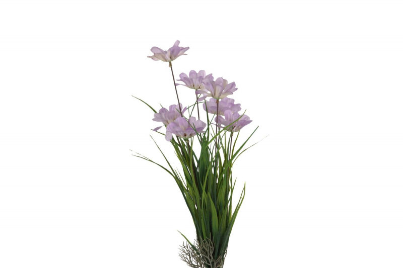 Dekoratívny umelý trs trávy s fialovými margarétkami je ideálnym doplnkom do každého interiéru. Jemné kvety v prirodzenom odtieni fialovej v kombinácii so štíhlou zelenou trávou vytvárajú svieži a elegantný vzhľad, ktorý oživí priestor počas celého roka.