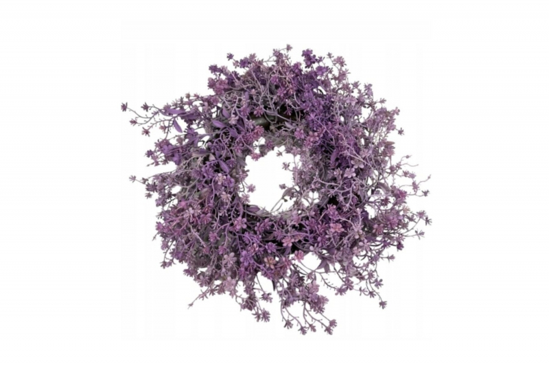 Elegantný dekoračný veniec s jemnými kvietkami v fialovom prevedení prinesie do vášho interiéru prirodzenú a romantickú atmosféru.
