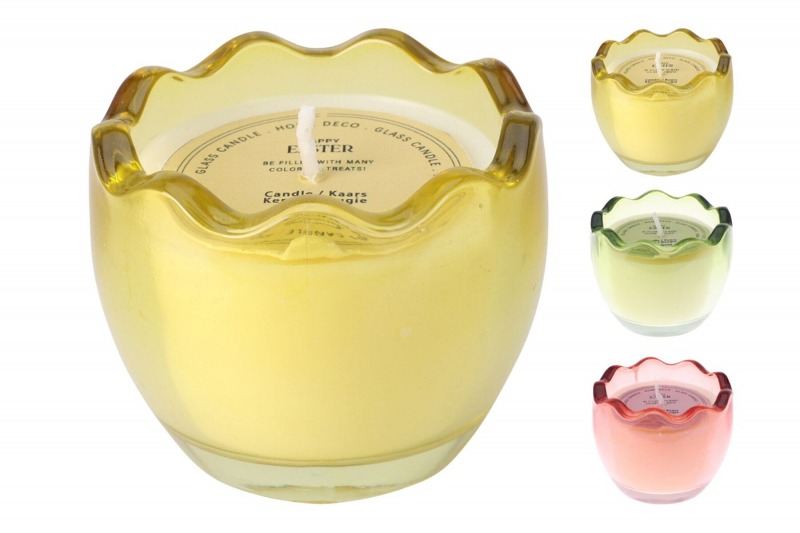 Očarujúca sviečka v tvare vajca. Kombinácia skla a vosku dodáva elegantný vzhľad, zatiaľ čo 10-hodinová doba horenia zaručuje dlhodobé používanie. Ideálna na veľkonočnú dekoráciu, darček alebo osvetlenie nálady.