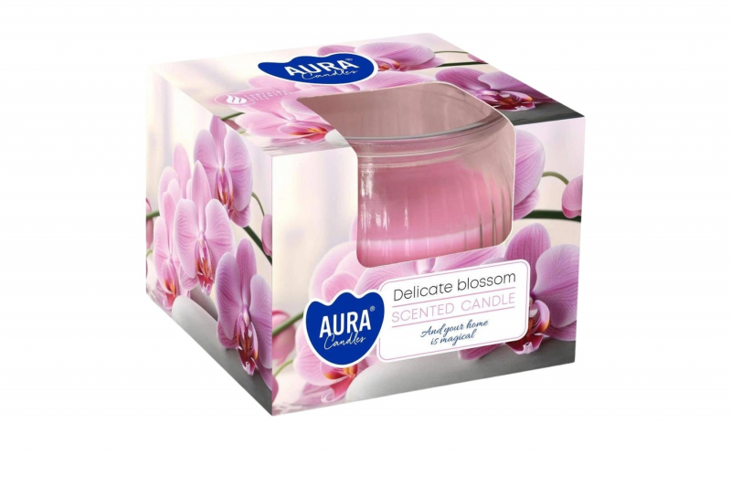 Vonná sviečka Aura Delicate Flowers kombinuje jemné kvetinové tóny s intenzívnymi ovocnými vôňami. Čierna ríbezľa dodáva jemnú kyslosť a bohatosť, dodáva vôni hĺbku a charakter. Malina a černica prinášajú sladké a ľahké tóny, ktoré jemne obklopujú priestor. Broskyňa prináša šťavnatú ovocnú vôňu, ktorá je zároveň relaxačná a osviežujúca.