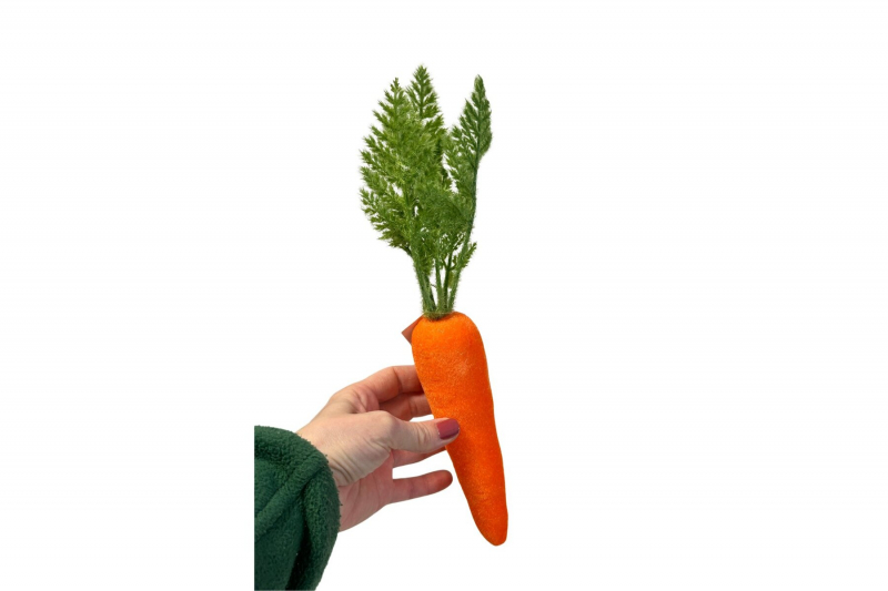 Oživte svoju jarnú alebo veľkonočnú výzdobu originálnym doplnkom v podobe veľkej dekoračnej mrkvy. Táto realisticky spracovaná mrkva v sýtej oranžovej farbe je doplnená hustou zelenou vňaťou, ktorá pôsobí prirodzene a sviežo.